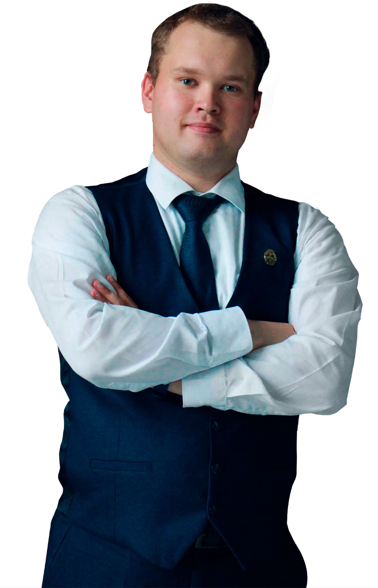 Окончил Белорусский государственный университет. Совмещаю адвокатскую практику с преподаванием гражданского права в Юридическом колледже БГУ, что позволяет мне видеть правовую ситуацию в системе и выстраивать обоснованные позиции с учётом теории и практики. Отмечен различными наградами, являюсь победителем юридических конкурсов республиканского и международного уровня. Включен в Банк данных одаренной молодежи, четырежды поощрен Специальным фондом Президента Республики Беларусь.